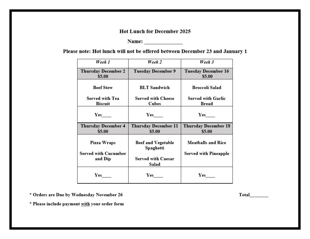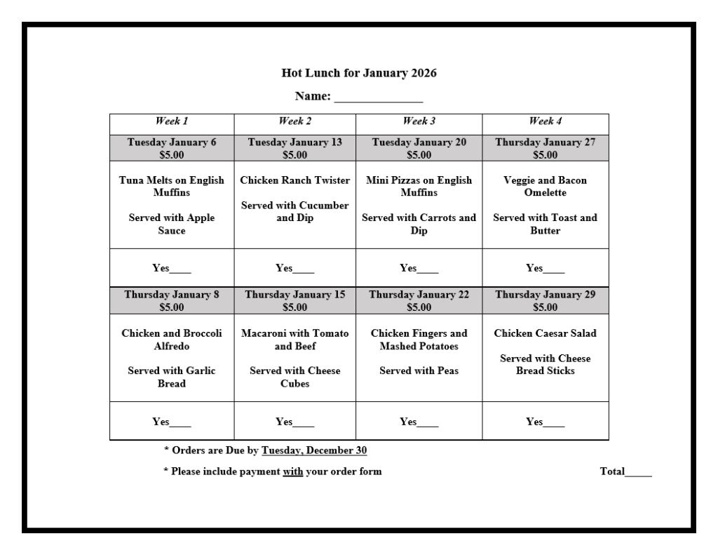 Monthly Hot Lunch